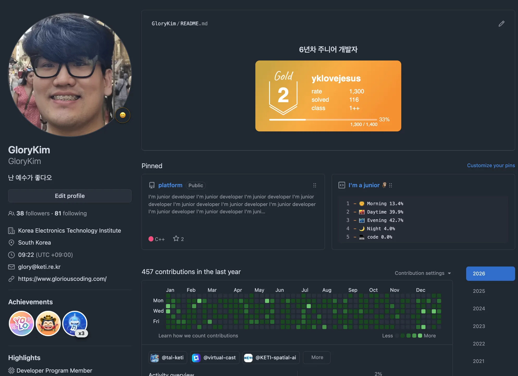 전 첨단에서 코딩하고, 개발하면서 연구사업하는 흔한 개발자 중 한명입니다.