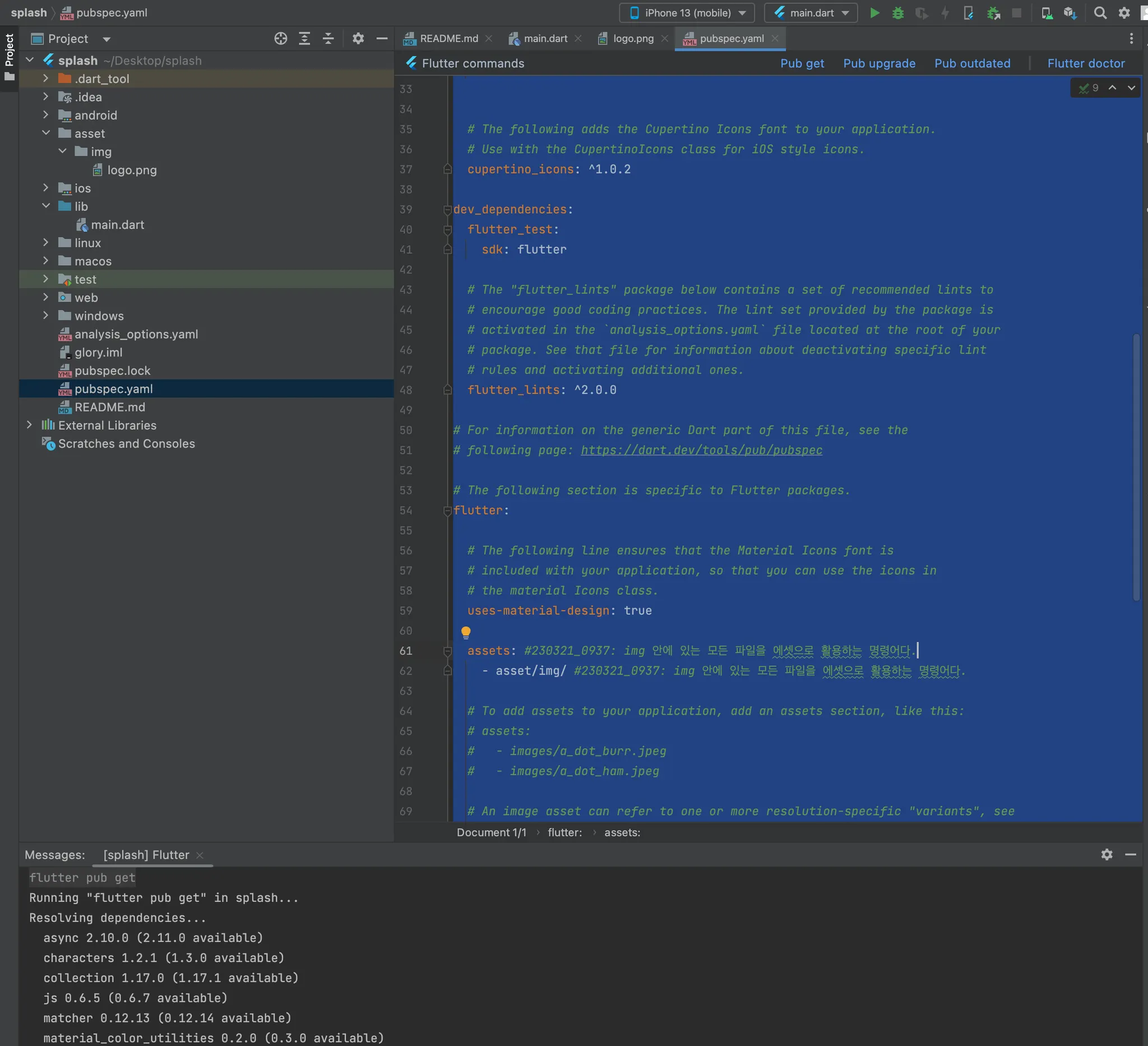 ‘pubspec.yaml’ 파일을 손을 봐줘야 한다.