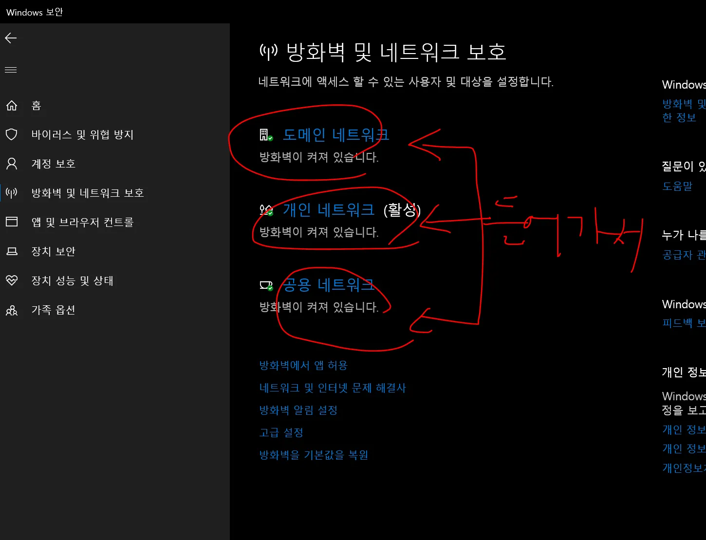 firewall.cpl을 입력하여 실행하면 방화벽화면이 나오는데 여기서 고급 설정을 누릅니다.