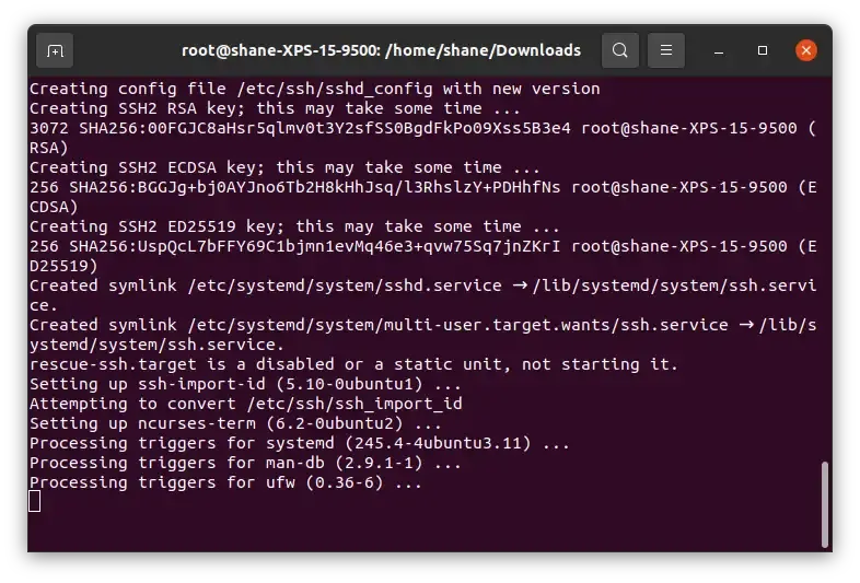 우선 우분투에 SSH 서버를 구축해야 한다. 다음 명령어로 SSH 서버를 설치하자.