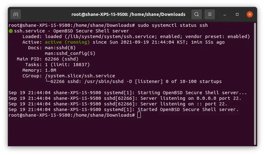 이제 다음 명령어로 SSH 서버를 실행하자.